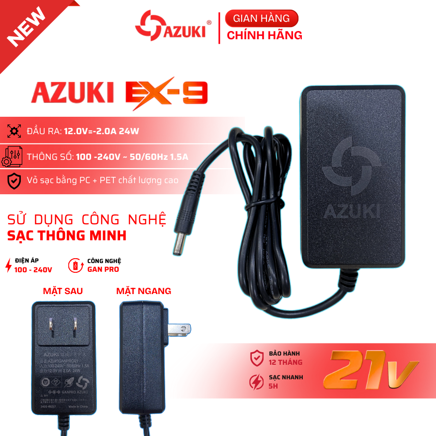 – Sạc AZUKI EX9 là sạc thông minh tự ngắt mạch khi đầy.